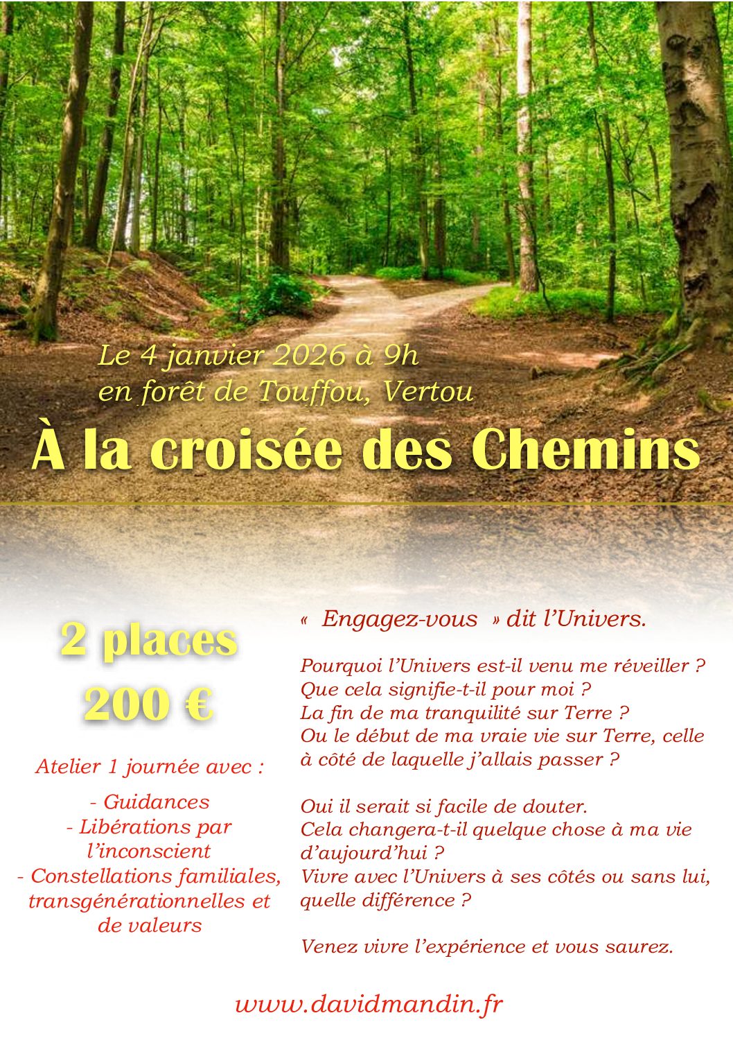 Complet___1 place – La Voie de la Réalisation – Stage en Individuel et Nettoyage Énergétique – 1 journée – mardi 11 novembre 2025 – 10h-17h – Forêt de Touffou, Vertou 44120 (selon météo) – 200€